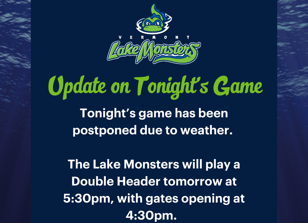 BURLINGTON, VT – Wednesday night’s Futures League game between the Vermont Lake Monsters and New Britain Bees was postponed due to rain at historic Centennial Field. The